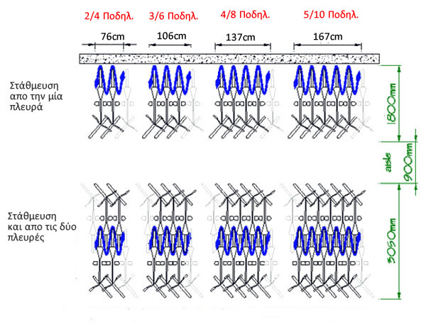 * Διαθέσιμα μήκοι για στάθμευση απο 2 εως 10 ποδήλατα απο την μία ή και τις δύο πλευρές.