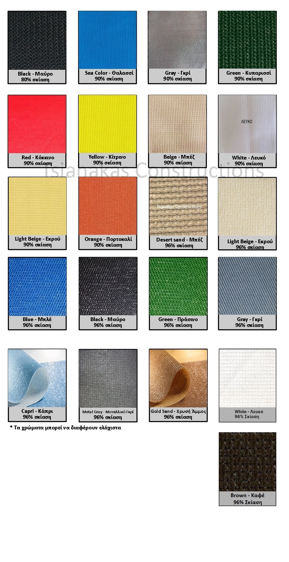 - Το δίχτυ σκίασης διατίθεται σε πολλά χρώματα