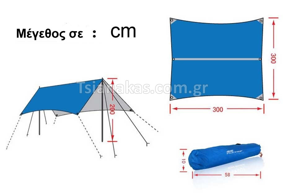 Κατασκευασμένο από αδιάβροχο πολυεστερικό ύφασμα διαστάσεων 300Χ290 cm